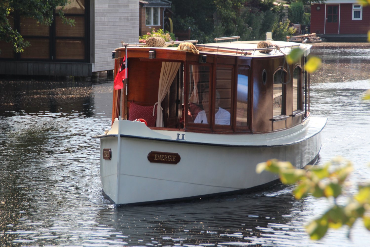 Stap aan boord van deze unieke, klassiek vormgegeven sloep met haar prachtig handgemaakte opbouw. Al bij het eerste aanzicht valt de uitzonderlijke schoonheid op: het ovale, hoogglans witte dak en de hoge houten opbouw zijn voor kenners een onmiskenbaar kenmerk van de Notaris-lijn. De sierlijke, scherpe boeg snijdt moeiteloos door het water en dankzij de uitstekende wendbaarheid laat deze boot zich soepel en gemakkelijk sturen.